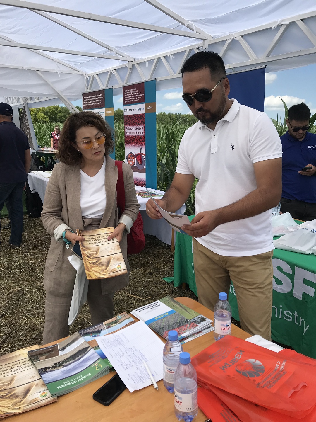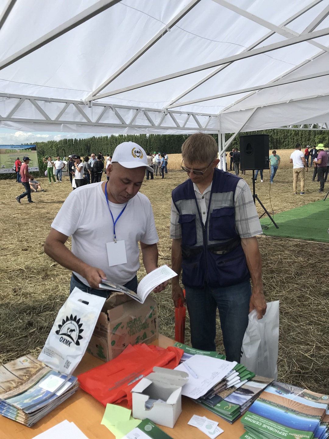 По приглашению официального дилера ООО «НПП «БИОСФЕРА» в Республике Казахстан – ТОО «АБН Технологии», в Казахстане с 21июля по 25 июля т.г. работала делегация компании «НПП «БИОСФЕРА». На базе Опытного хозяйства масличных культур (ОХМК), Национального Центра зерна им.П.П. Лукьяненко в с.Солнечное Глубоковского района Восточно-Казахстанской области прошел Республиканский День Поля. В рамках выставочно-ярмарочных мероприятий участники и гости форума посетили демонстрационные посевы зерновых, бобовых и масличных культур. Увидели современные сорта пшеницы, выведенные специалистами Национального Центра зерна им.П.П.Лукьяненко. Познакомились с новинками средств защиты растений, микро и макроудобрений, сельскохозяйственной техники. Биологические препараты серии «БИОСФЕРА» были представлены на объединённом стенде компаний ТОО «АБН Технологии» и «НПП «БИОСФЕРА». По результатам работы форума , запланированы полевые испытания препаратов, научно-исследовательская работа в хозяйствах Западно-Казахстанской области, Восточно-Казахстанской области, Павлодарской и в других областях. Также, объединенная делегация, под руководством учёного-агронома, директора по науке, производству и инновациям ООО «НПП «БИОСФЕРА» к.с-х.н. Давлетшина Ф.М. , проинспектировала ряд хозяйств, где ранее были применены рекомендованные биотехнологии. Агрономам хозяйств даны практические рекомендации, намечены дальнейшие агрономические и биологические исследования почв и растений. ТОО «АБН Технологии» - динамично развивающаяся компания, обеспечивающая аграриев страны современной техникой, семенами, удобрениями и средствами защиты. В г.Уральске расположен головной офис и база по продаже и обслуживанию сельскохозяйственной техники. Филиалы компании расположены в г.Нур-Султан и г.Кокшетау.